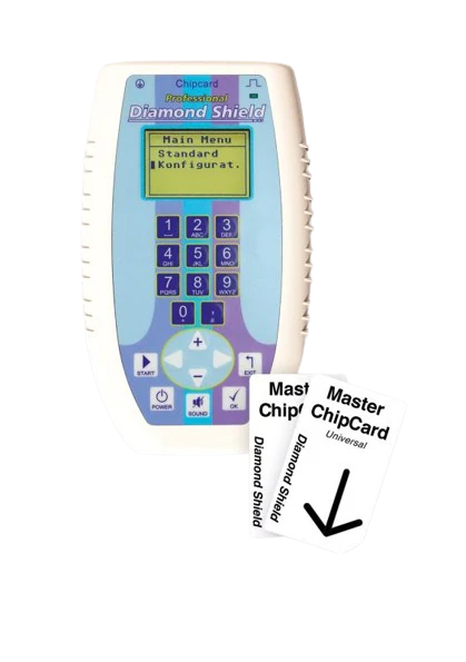 • this ChipCard with its individual programme can be used at home with the Diamond Shield Zapper IE EMS